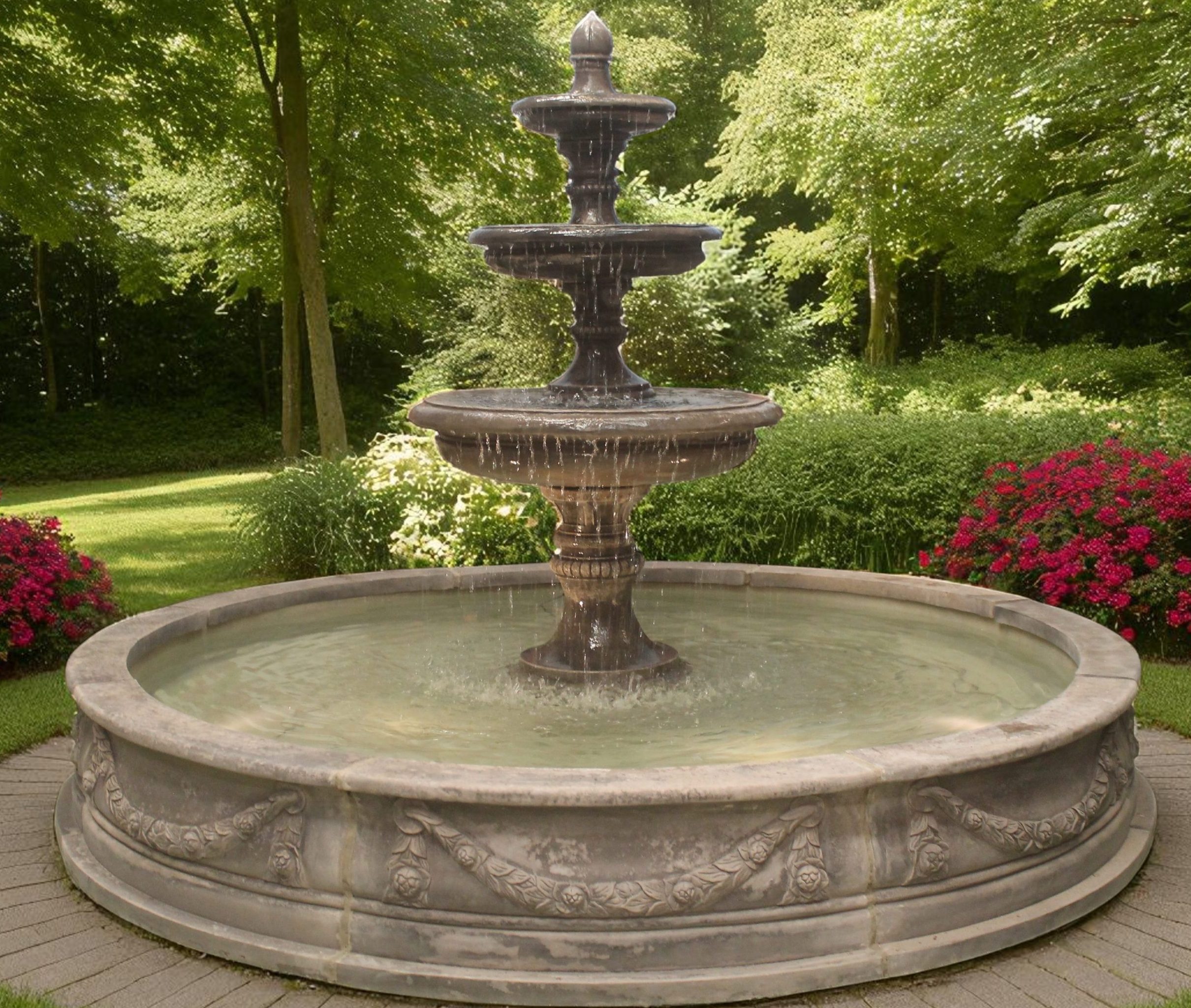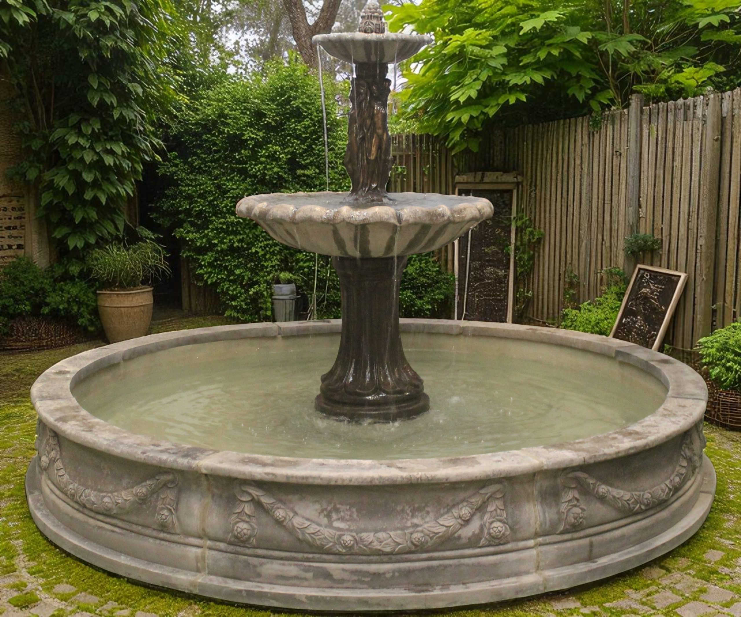 3 tiered Edwardian fountain or Large 3 Graces fountain with large Lawrence pool surround,