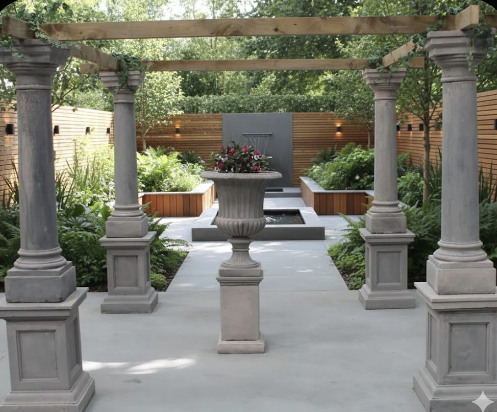 4 Column Pergolas. Large pergola consisting of 4 columns and plinths. Can be used to frame an area of the garden or for small and light load bearing structures, as can be seen in the pictures (wooden struts and grass not included).