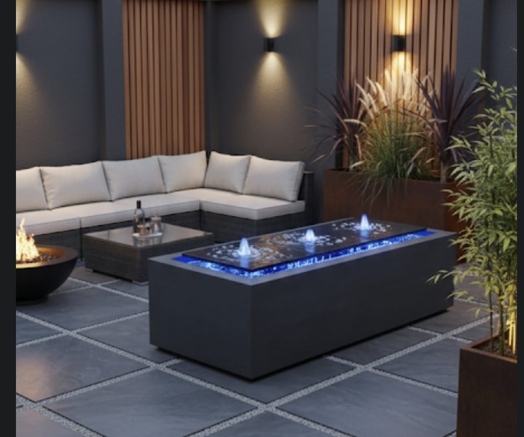 Geoff’s garden ornaments is please to offer our new design Grande Nexus water feature , a striking focal point that combines the soothing sound of moving water, and as an optional add on of lighting, making it suitable for evening use and modern landscape designs.
