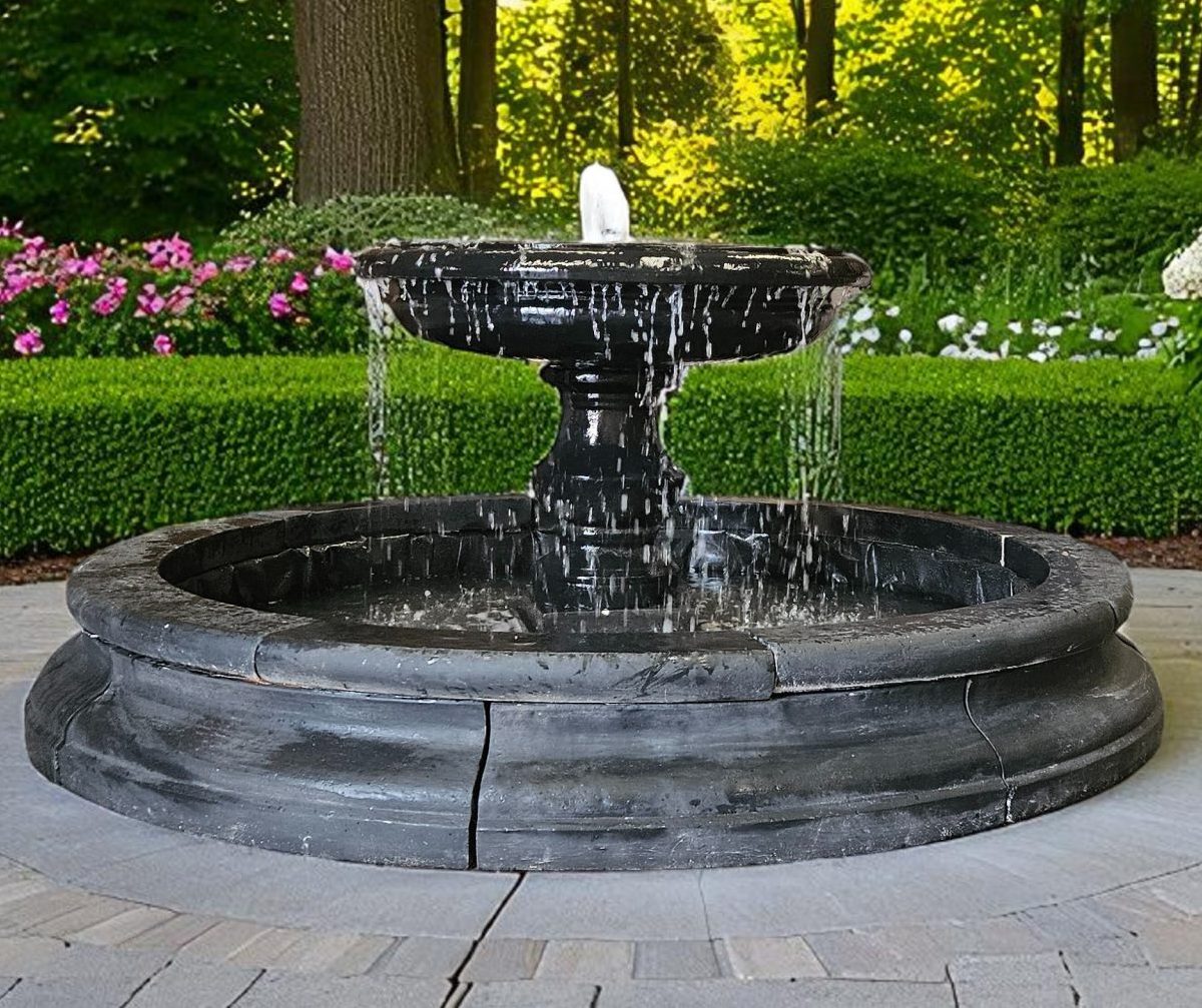 single Regis fountain with our exclusive double pool design. Simply lay the base sections onto a level flat surface, place the liner in the pool and fill with water, placing the coping stones on top, sandwiching the the liner between and cutting away any excess liner. , fully self-contained with no need for an external water supply.