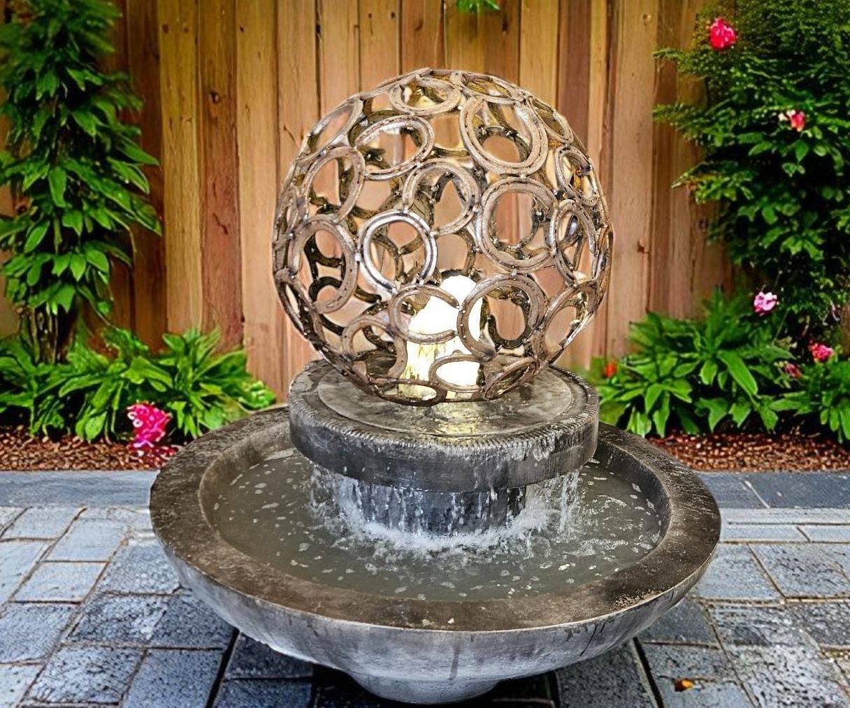 Locally sauced horse shoe sculpture, incorporated into our Atlas fountain.