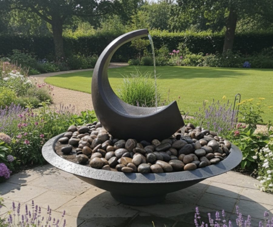 Price includes Bowl / Shard sculpture / pump with 10 m of cable, and pipe work / 100 kg of Scottish river Cobbles / Delivery *